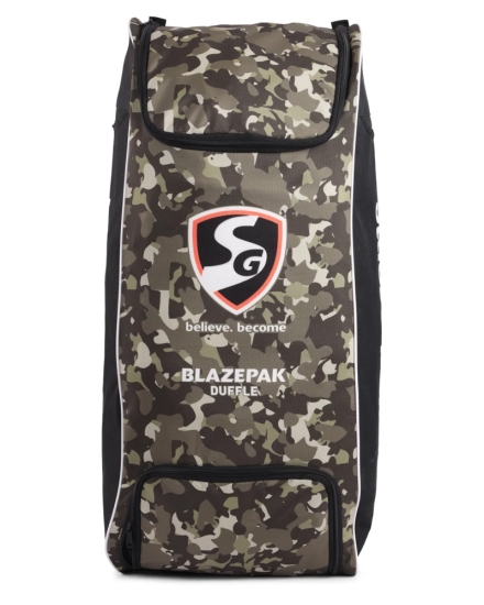 The SG Blazepak Duffle Kit Bag is a durable, water-resistant wheelie bag with two bat sleeves, shoe compartment, and large storage capacity. Features include customized zips, padded straps, and reinforced stitching for long-lasting strength.